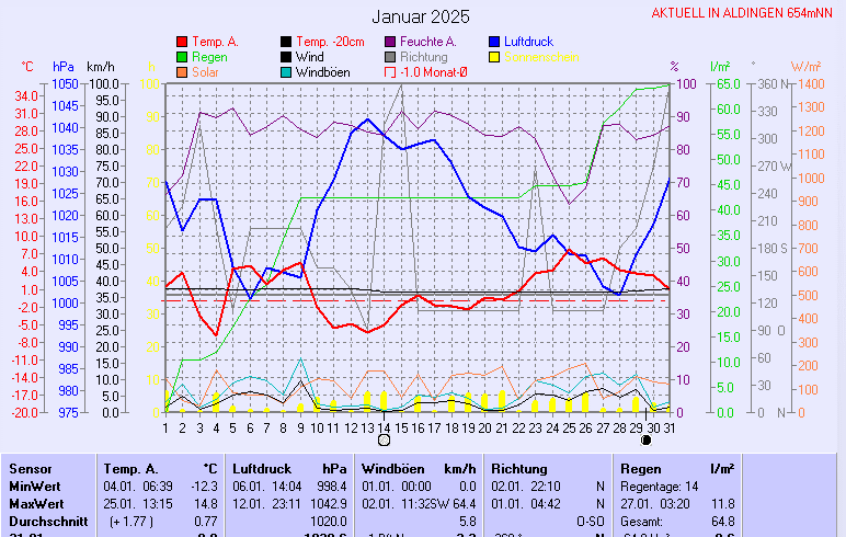 Darstellung des aktuellen und zurückliegenden Wetterverlaufs seit Jan 2002 anhand von Diagrammen und Tabellen |