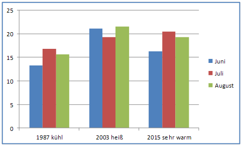 dieses Sommers der Juli 15 mit seinen 11 heißen Tagen ( normal sind 3 Tage ).