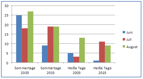 Vergleich der Anzahl Sommertage ( mind. 25°C ) und der Anzahl heißer