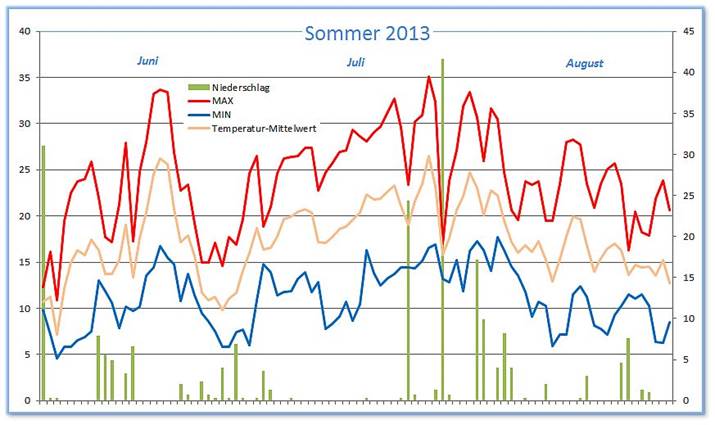 Temperaturmittel des Sommers 2013 lag bei 17,5 Grad was 1,3 Grad über der Norm